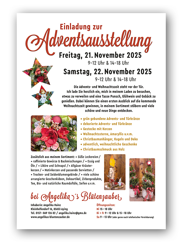 Schauen Sie gern vorbei, zum Stöbern, sich inspirieren lassen oder eine Tasse Punsch oder Glühwein.